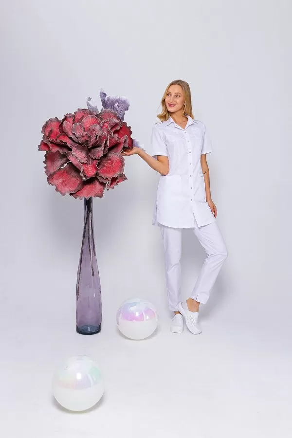 Начнем с того, что данная модель прекрасно скроет ваши недостатки и удачно подчеркнет достоинства! Это ли не чудо? Также короткие рукава идеальны для лета, да и круглый год. Ведь отопление у нас хорошее! К тому же благодаря застежке на кнопках блузу легко снять и надеть. За одно движение! Нагрудные и боковые карманы крайне функциональны, и не забываем, что карманов много не бывает! В дополнение к вышесказанному, хотели сказать про разрезы по бокам, которые делают силует более интересным и не скрадывают длину ваших ног. Также благодаря этому удлиненный силует остается воздушным и легким, однако свои функции выполняет отлично, прикрывая то, что хочется. Мы все продумали за вас!