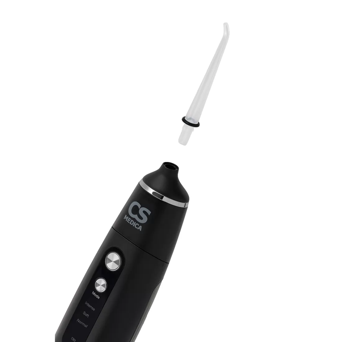 Стильный портативный ирригатор CS Medica AquaPulsar CS-3 PRO+ можно использовать не только в домашних условиях, но и в поездках и путешествиях. Благодаря трем режимам работы с двумя уровнями интенсивности, пользователи подберут комфортное давление струи воды – от 200 до 790 кПа.Для проведения полноценной гигиены ротовой полости в комплект поставки входят 5 сменных насадок: стандартные (3 шт.), ортодонтальная для брекетов (1 шт.), пародонтальная с мягким наконечником для чувствительных десен (1 шт.). Угол наклона насадок составляет 135 градусов для лучшей очистки труднодоступных участков полости рта.