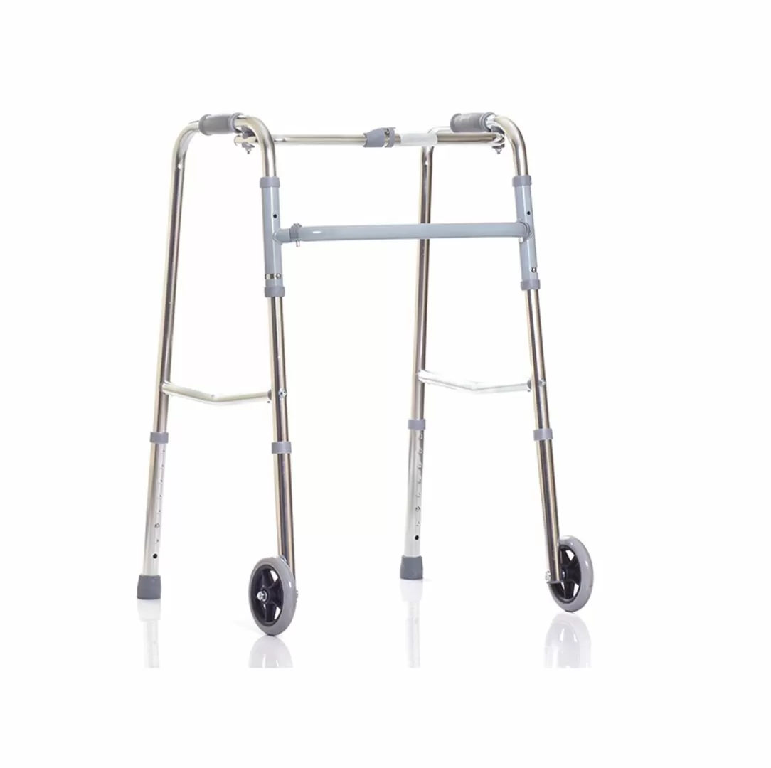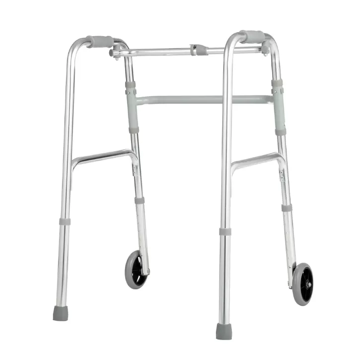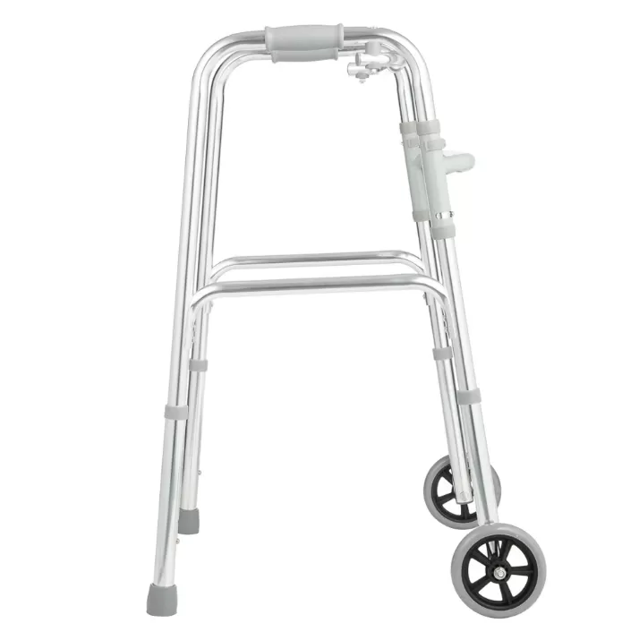 - Ходунки легко складываются без применения инструмента с помощью кнопочного механизма и очень удобны при хранении