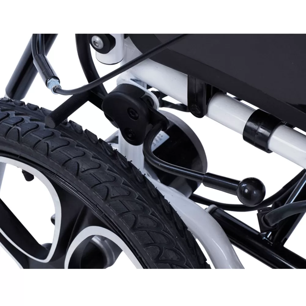 - Разведённые по сторонам аккумуляторные боксы позволяют складывать кресло-коляску MET COMFORT 85, не снимая аккумуляторы - одним движением руки.