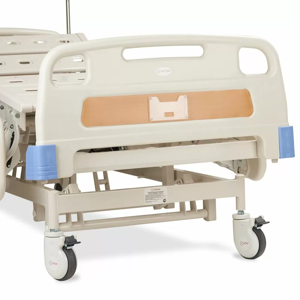 - Конструкция кровати включает четыре прочных маневренных колеса, оснащенных тормозами. Пациента можно легко и безболезненно перевезти в другое помещение и надежно зафиксировать кровать на месте.