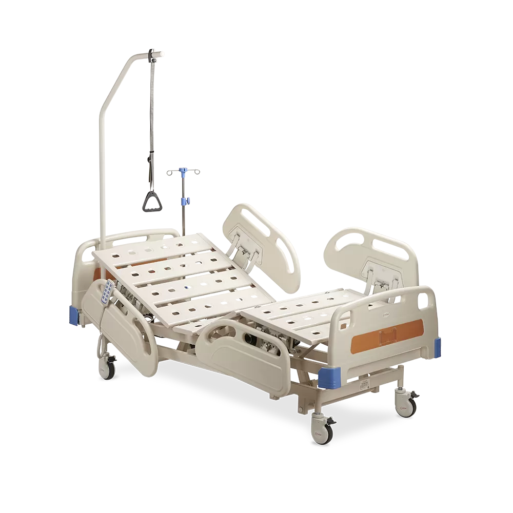 - Стандартная комплектация кровати имеет: 4 защитных ограждения, стойку-держатель для капельниц, а также устройство для самостоятельного подтягивания