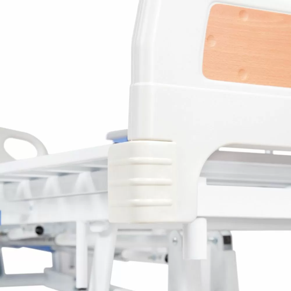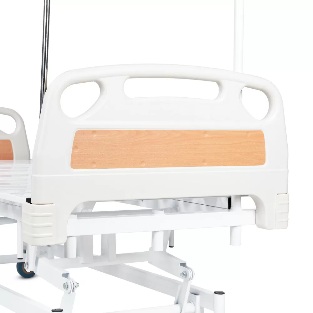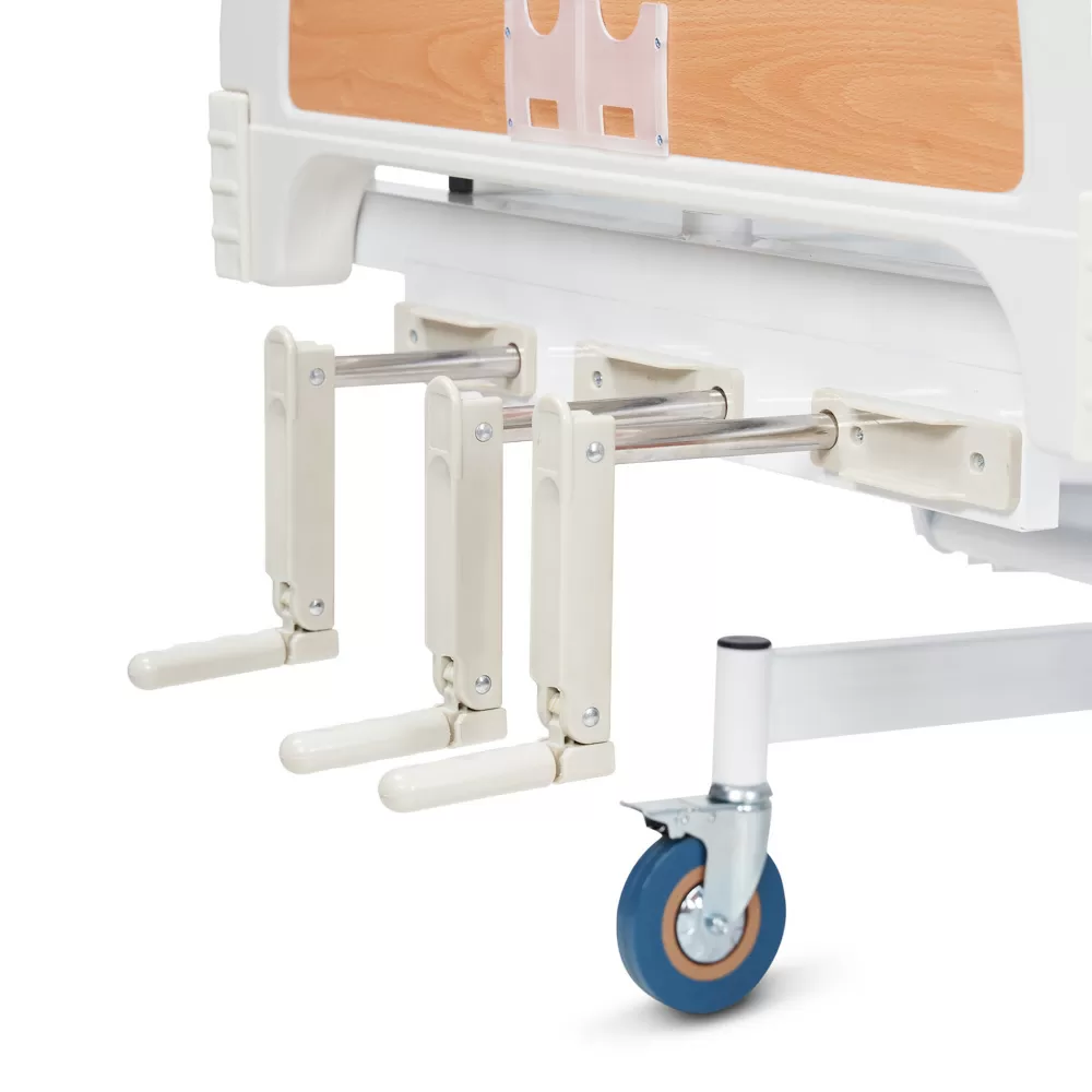 - Безопасность пациента обеспечат два боковых ограждения, которые легко поднимаются и опускаются легким нажатием клавиш. Также ограждения используются для установки надкроватного столика.