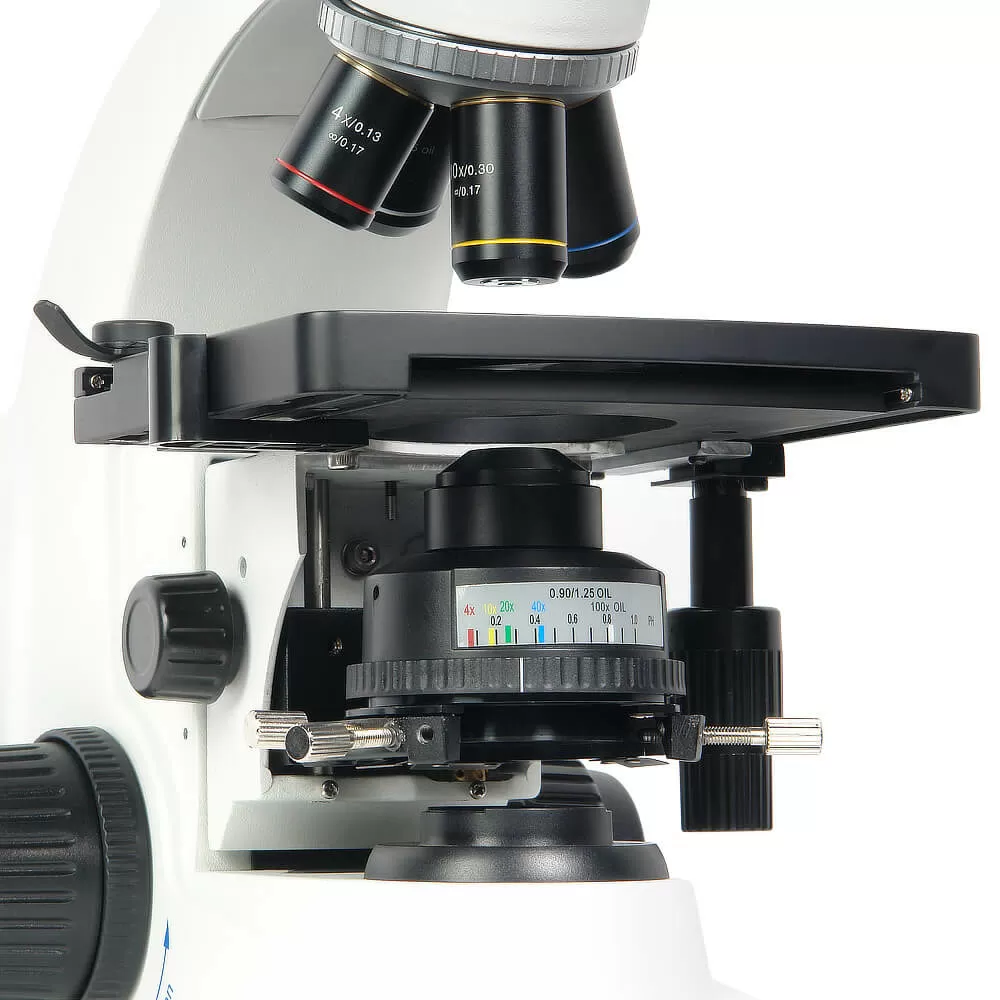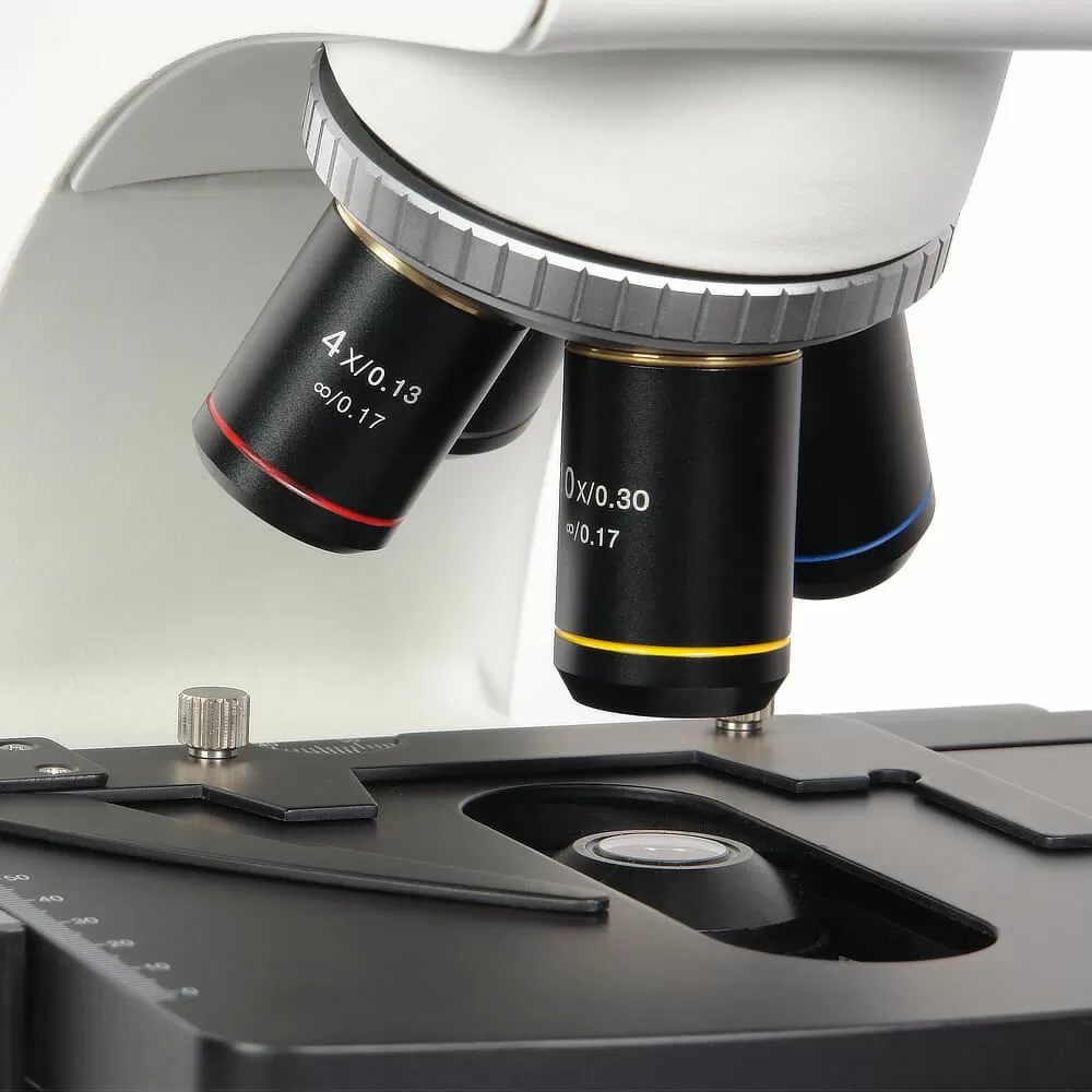- В комплекте микроскопа объективы с коррекцией на бесконечность 4x/0.13, 10x/0.30, 40x/0.70 и иммерсионный объектив 100x/1.25 oil. По дополнительному заказу может быть приобретен объектив 60х/0.80. Высокое оптическое качество объективов обеспечивает информативность и комфорт при исследованиях и отличное качество записываемых изображений. Объективы стандартизованы по DIN и имеют парфокальную высоту 45 мм.