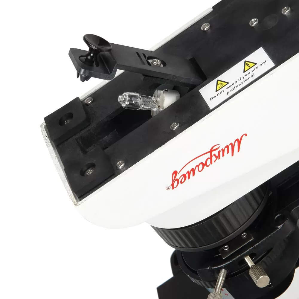 - Металлическая конструкция микроскопа гарантирует надежность, стабильность и точность настроек. Штатив и основание изготовлены из алюминиевого сплава, на них нанесено износостойкое покрытие с антистатическими свойствами. Компактная и эргономичная конструкция делает микроскоп простым в эксплуатации и позволяет ему занимать минимальное пространство.