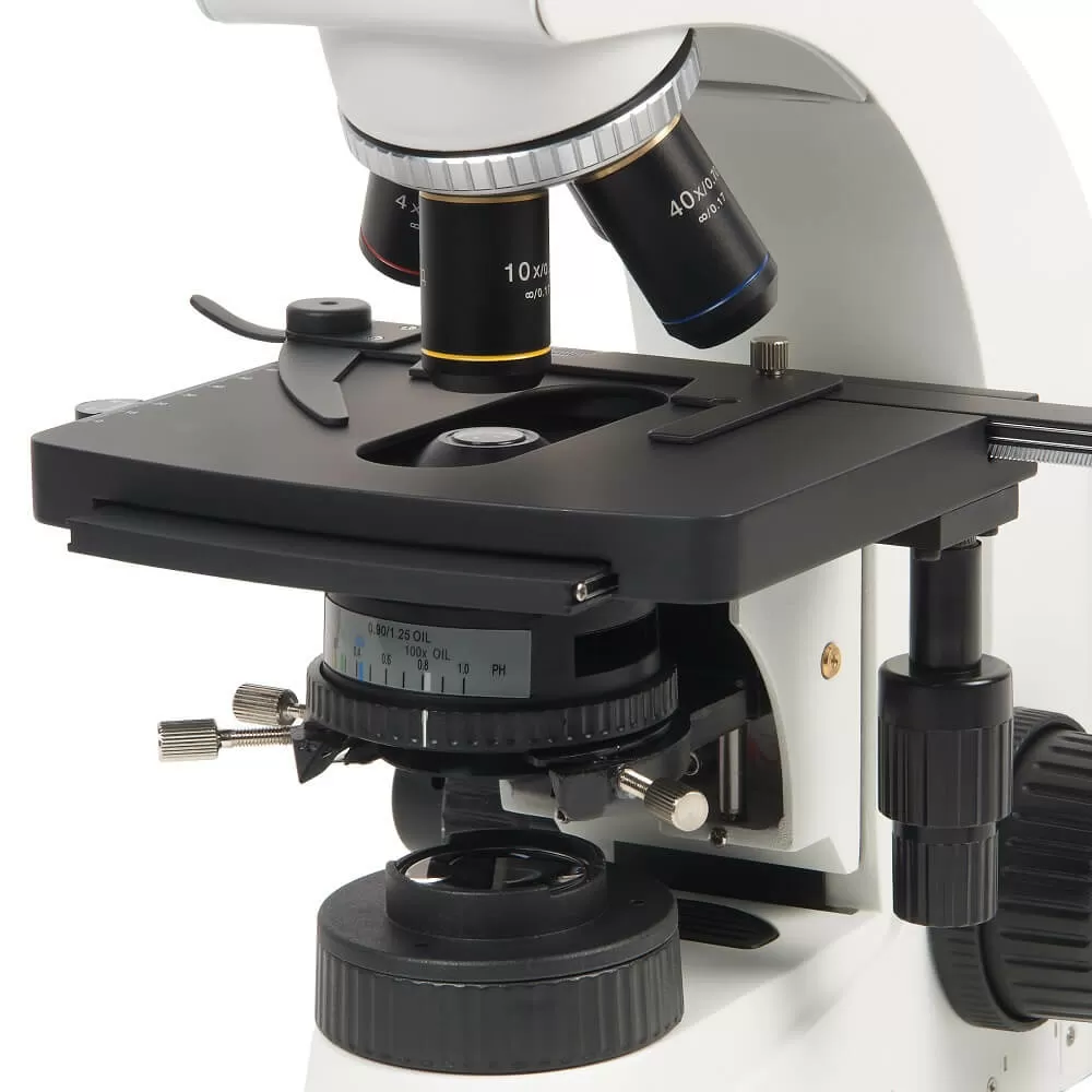 - В комплекте микроскопа объективы с коррекцией на бесконечность 4x/0.13, 10x/0.30, 40x/0.70 и иммерсионный объектив 100x/1.25 oil. По дополнительному заказу могут быть приобретены объективы 20x/0.45 и 60х/0.80. Высокое оптическое качество объективов обеспечивает информативность и комфорт при исследованиях и отличное качество записываемых изображений. Объективы стандартизованы по DIN и имеют парфокальную высоту 45 мм.