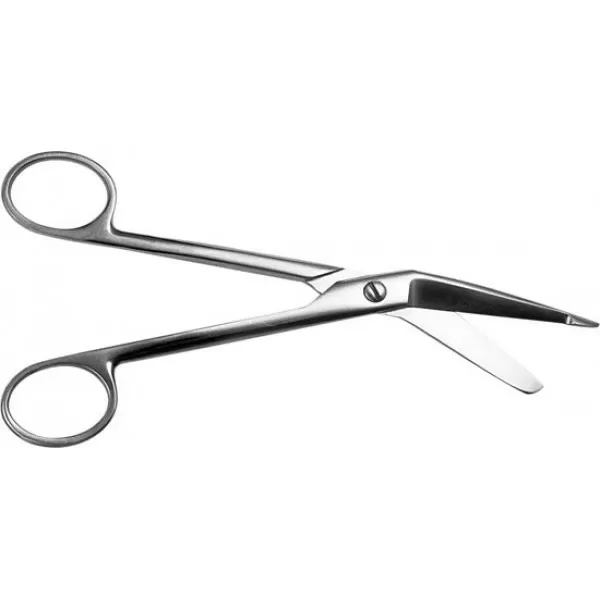 Представляют собой хирургические ножницы изогнутые по ребру примерно на 30 градусов. Одно лезвие тупоконечное, на втором лезвие имеется утолщение в виде пуговки. Эта "пуговка" позволяет легко подвести лезвие под повязку и не травмировать пациента.