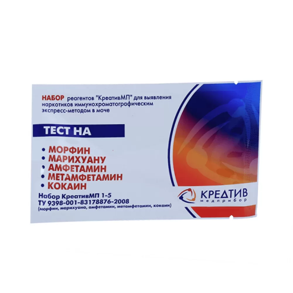 Тесты по моче КреативМП-5 для определения 5 видов наркотиков, 20 шт. Цена за упаковку из 20 штук.Мультипанель погружного типа применяется для выявления факта употребления нескольких видов наркотиков.